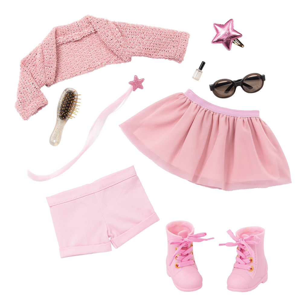 Explorez la mode étoilée et les styles brillants avec Stella ! Cet ensemble de départ Our Generation comprend 3 tenues interchangeables, des accessoires de coiffure pour accessoiriser chaque look et une poupée Stella de 46 cm. Elle a des yeux bleus lumineux qui s'ouvrent et se ferment, et ses longs cheveux blonds ondulés et brossables sont très amusants à coiffer ! Déballez les tenues de Stella et commencez à les mélanger et à les assortir. Ensuite, ajoutez un pouvoir de star avec les accessoires étincelants pour lui donner un éclat supplémentaire - y compris un collier, des lunettes de soleil, un faux vernis à ongles et un sac à main de star. Ce dernier s'ouvre à l'aide d'une fermeture éclair pour transporter les accessoires en déplacement ! Donnez une touche de couleur à la coiffure de Stella avec l'extension de cheveux rose. Ou accessoirisez ses tresses, ses torsades et ses queues de cheval avec la pince à cheveux en forme d'étoile ! Besoin d'un peu d'inspiration ? Ouvre le guide de style et découvre 3 thèmes de coiffure mignons : Casual, Party Passion et Fun & Fancy ! Les tenues et les bijoux sont dotés de fermetures faciles à ouvrir pour les mettre et les enlever rapidement, afin que Stella brille de mille feux dans toutes ses aventures !