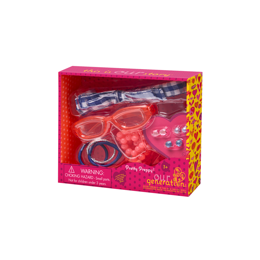 • Conjunto de jóias para bonecas de 46cm: dê um toque especial às roupas das suas bonecas de 46cm com o conjunto de jóias Our Generation Pretty Preppy!